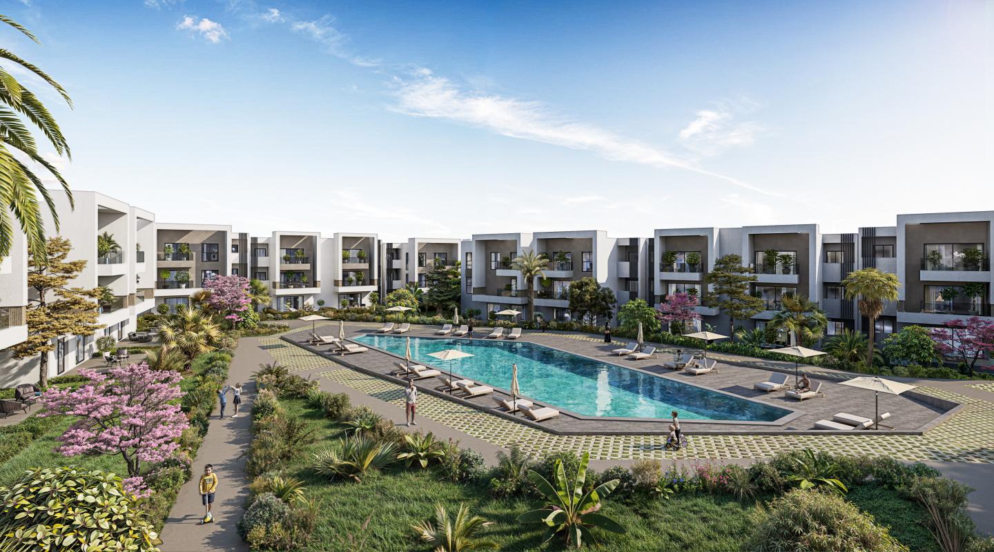 Cette nouvelle tranche propose des appartements de haut standing, en R+2, du F2 au F5, en simplex et duplex, avec des superficies comprises entre 45 m² et 161 m². L’ensemble est organisé autour d’un cœur d’îlot paysager, agrémenté d’une vaste piscine, offrant ainsi un cadre de vie paisible et raffiné.
